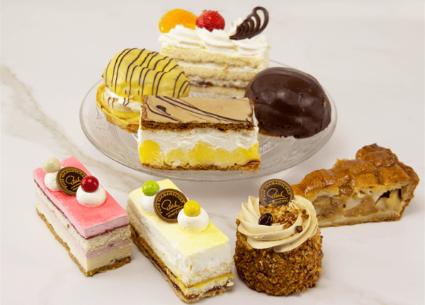 Gebakjes en taarten vers uit de bakkerij